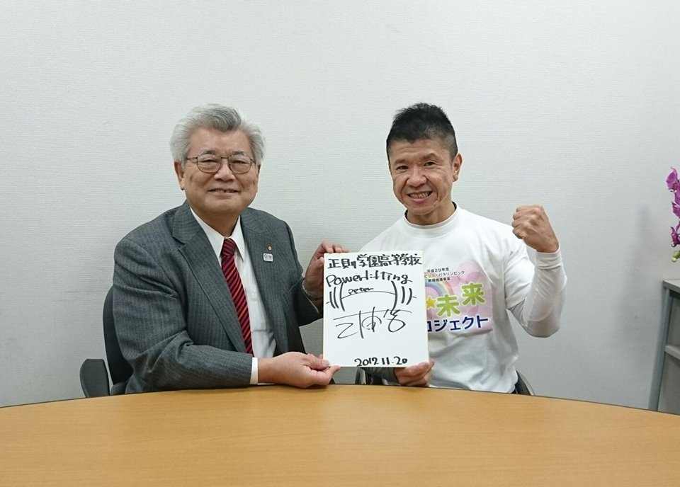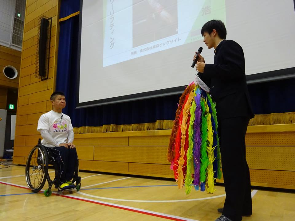 三浦先生が目指す2020年東京オリンピック・パラリンピック。本学園の生徒達も思いをひとつに三浦先生を応援していきたいという気持ちを込めて生徒全員で千羽鶴を折り、贈りました。