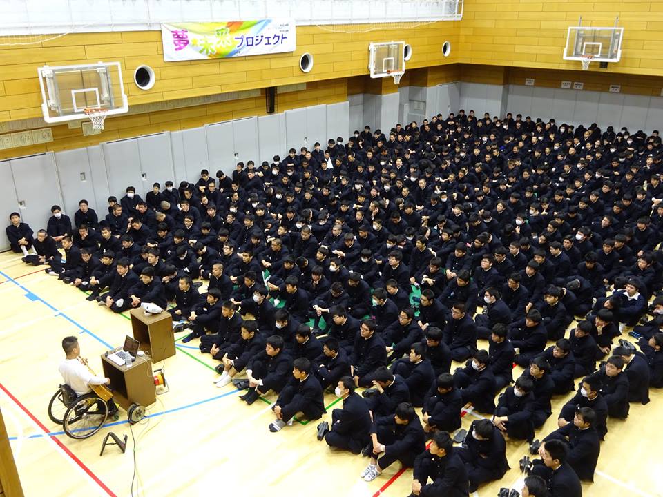 「どんな状況下でも無理だ、できないではなく、夢を持ち続けろ!」という熱いメッセージに生徒達は勇気づけられました。