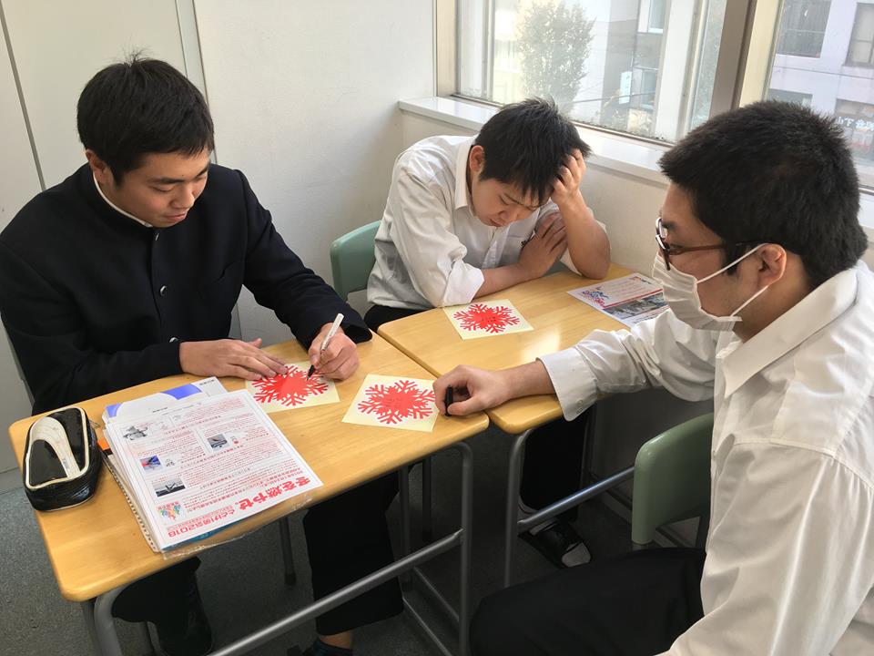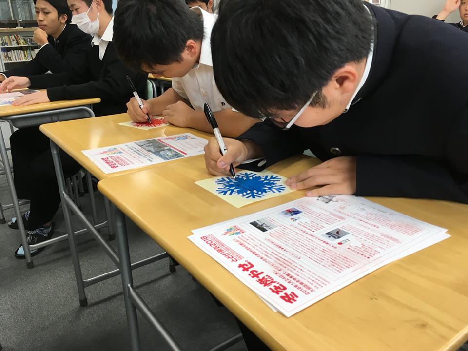 昼休みを利用して参加生徒達へオリンピック競技、日本代表選手団についての事前授業、日本代表選手団へ向けた応援メッセージを作成しました。