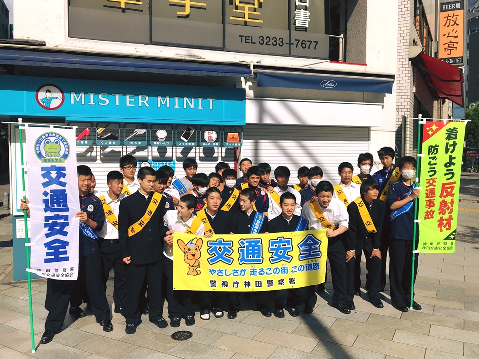 トピックス 2019/05/23 サッカー部・剣道部が春の全国交通安全運動に参加しました サッカー部、剣道部の生徒が、春の全国交通安全運動の一環として神田警察署の方々と駿河台下交差点でティッシュ配りを行ってきました。