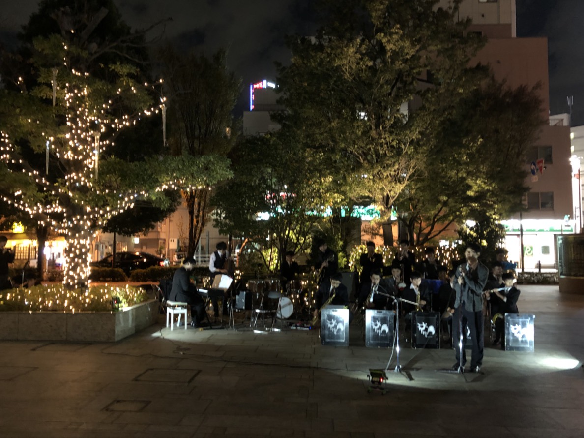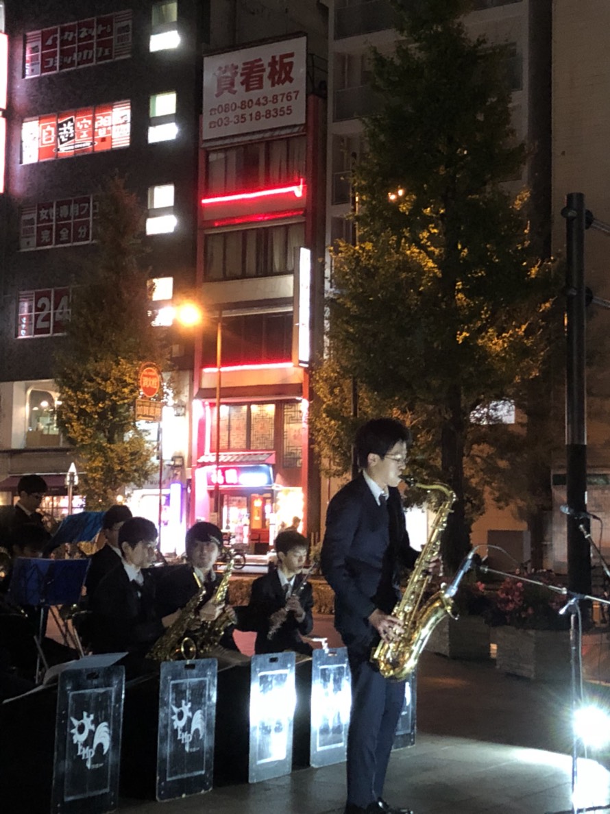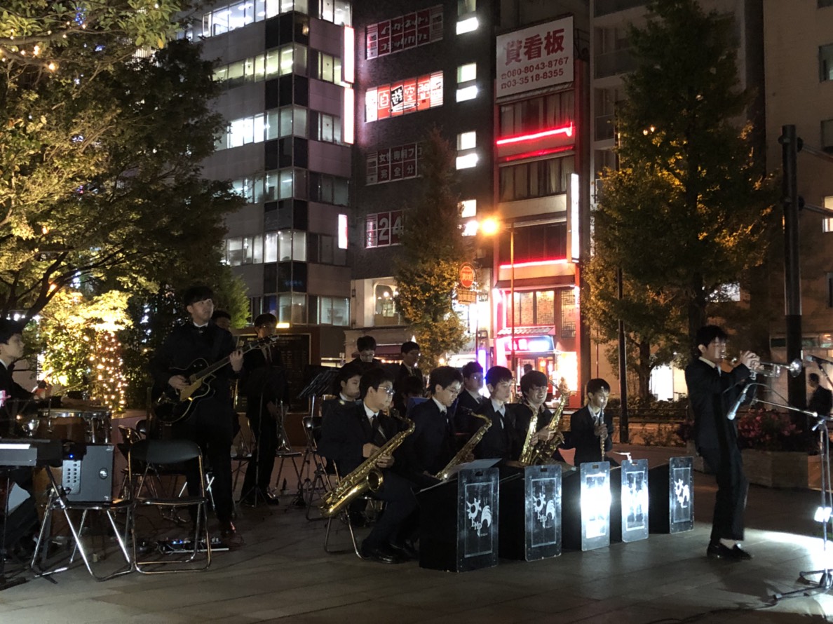 部活動 2018/11/19 ビッグバンド部がライトアップイベントに参加しました 11月16日(金)18:00より始まった神保町三井ビルディングライトアップイベントで今年もビッグバンド部がオープニング演奏をさせてもらいました。 神保町三井ビルディングは神田、御茶ノ水界隈でも有名なイルミネーションスポット。 メンバーたちは光と音が醸し出す幻想的な雰囲気を感じながら気持ちを込めて演奏してきました。