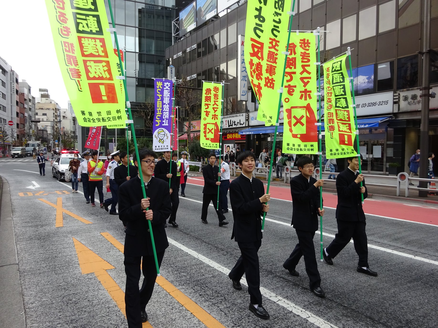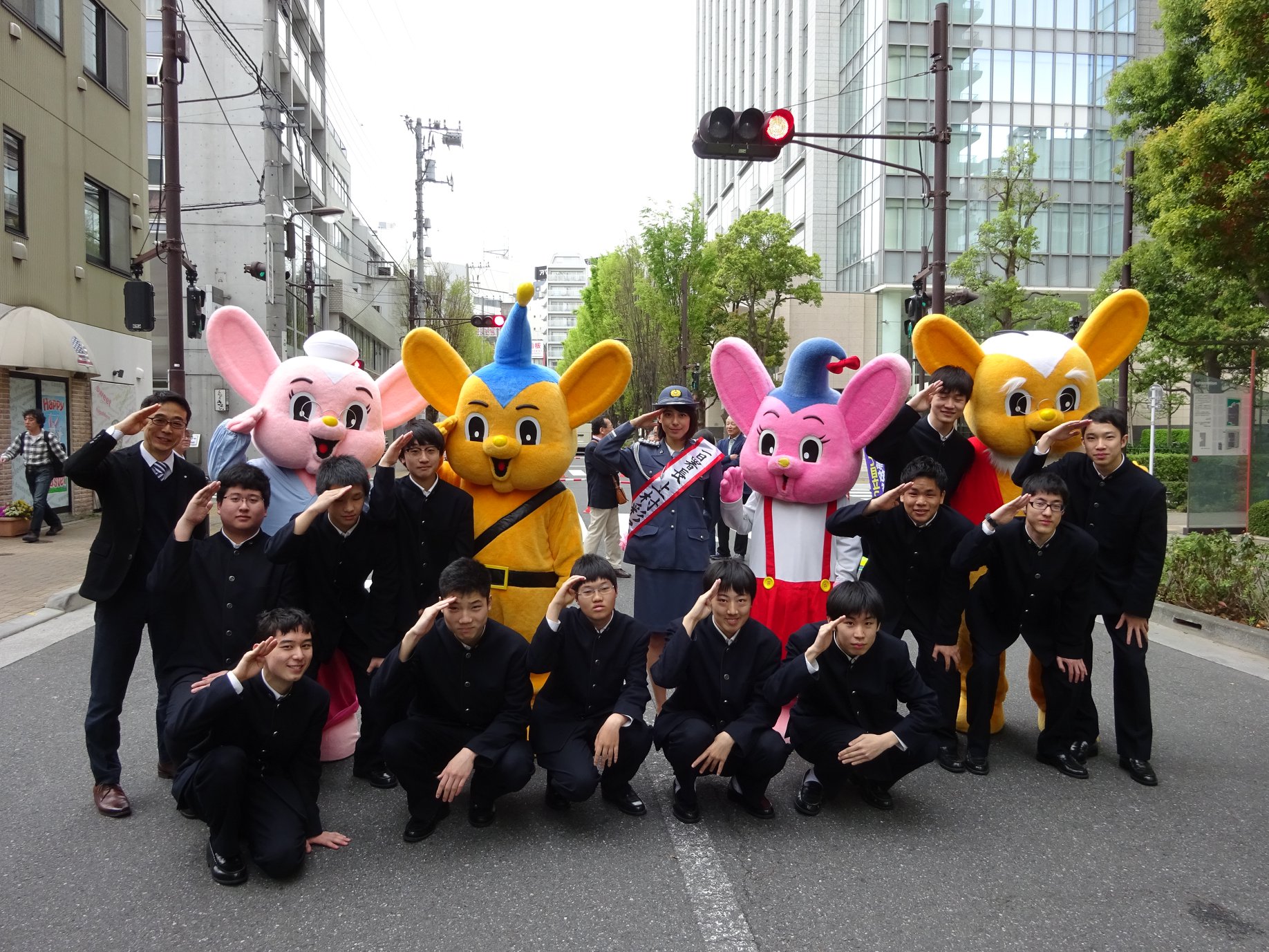 トピックス 2018/04/10 交通安全イベントに参加いたしました 4月7日(土)春の全国交通安全運動にあわせて実施された交通安全イベントに本学園の生徒達が参加してきました。 イベントでは、警視庁の音楽隊に先導され、一日警察署長のTBSのアナウンサーの上村彩子アナウンサー、神田警察署の署員の方々、地域の方々と共にパレードをするなどして交通安全を呼びかけました。