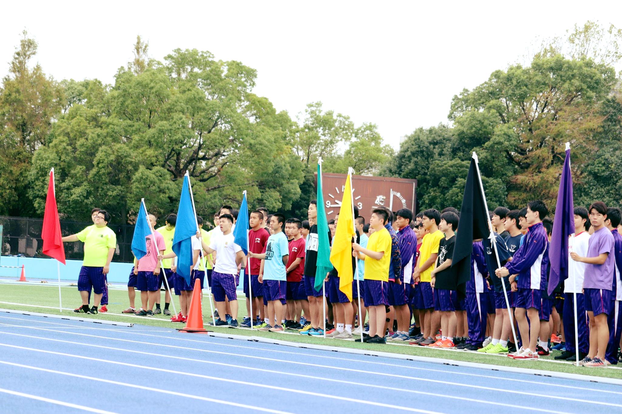 今回の体育祭では、学年の枠を越えた縦割りのクラス対抗戦が採用され3年生の団長を中心としたクラスの応援合戦が実施されました。