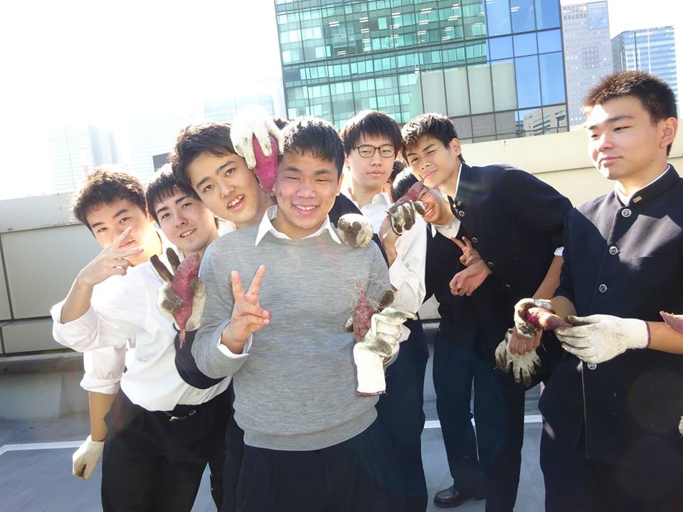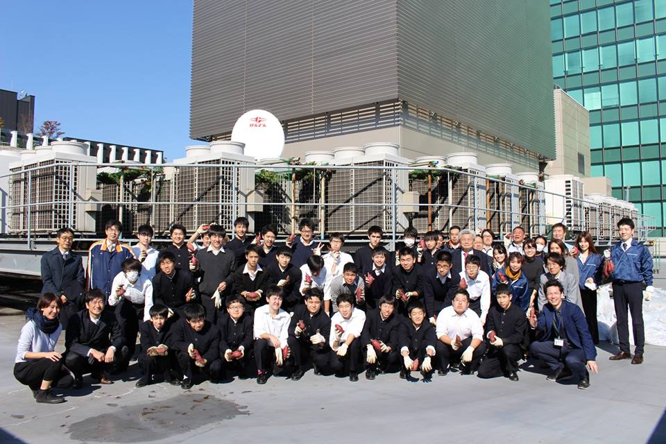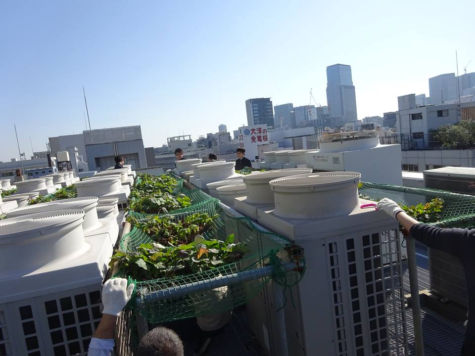 平成29年11月9日(木)に住友商事美土代ビル(神田美土代町)の屋上で行われている屋上芋緑化のサツマイモ収穫を手伝わせていただきました。