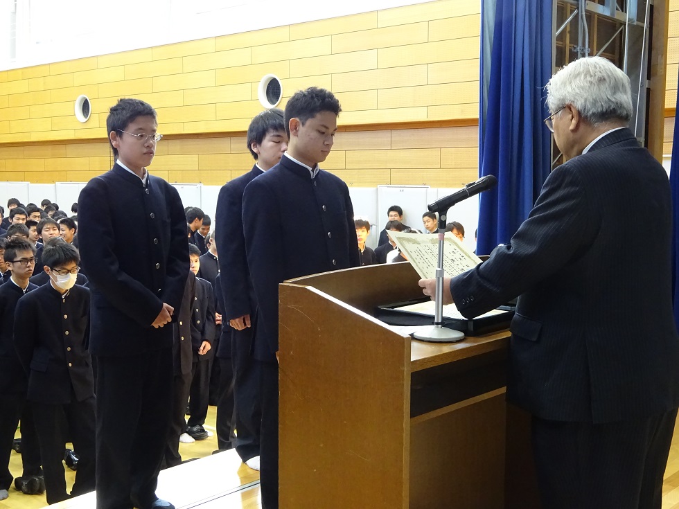 トピックス 2016/10/24 校内英語スピーチコンテストの表彰式が実施されました 第58回紫紺祭内で実施された校内英語スピーチコンテスト兼ニュージーランド語学研修派遣選考会において優秀な成績を修めた生徒の表彰が実施されました。 表彰された3名の生徒は来年夏に実施されるニュージーランド語学研修への派遣代表生徒としての認定も受けており、今後の英語能力の向上に繋げてもらいたいと思います。おめでとうございます。 *ニュージーランド短期語学研修派遣代表生徒認定者 ・第1種特待認定生徒 野田 明紀君(1年) ・第3種特待認定生徒… 植木 周平君(2年)、内田 隆成君(1年)
