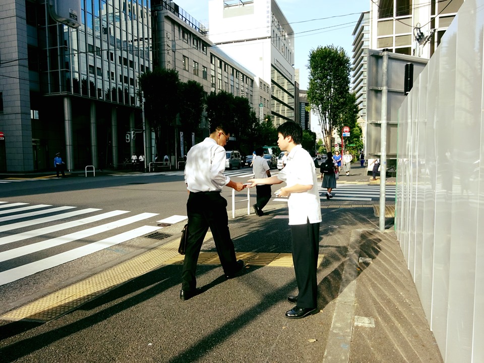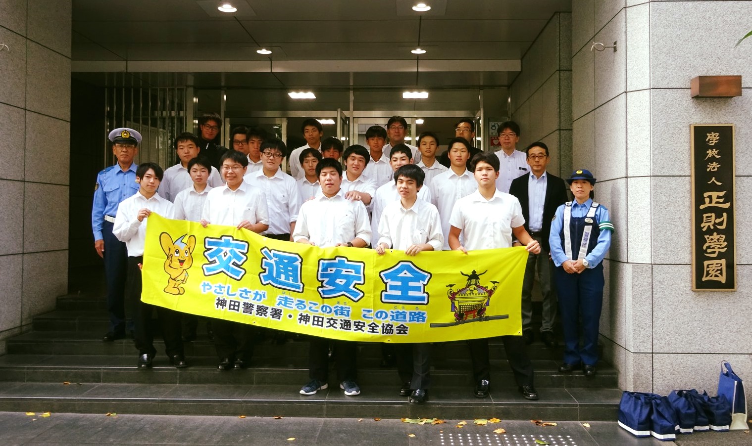 トピックス 2019/09/28 秋の交通安全運動でティッシュ配りを行いました 秋の全国交通安全運動に伴い神田警察署の方々と新生徒会役員及び希望者の生徒達で交通安全を促すティッシュ配りを行いました。 『いつも通っている道だから・・・」は危険!とのことで信号無視、横断禁止場所の横断は決してしないようにお願いします。