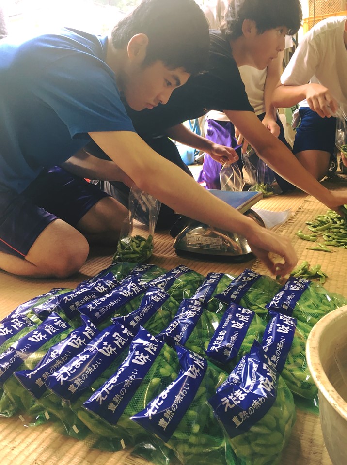 今回は枝豆の出荷のお手伝いと枝豆畑の整備。