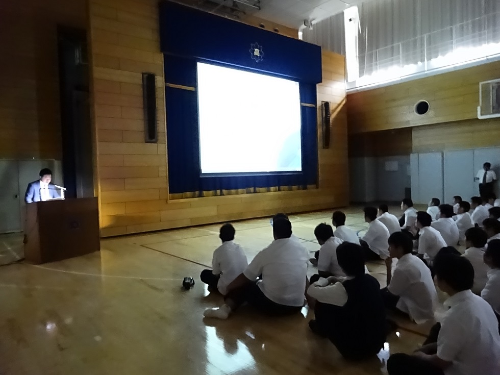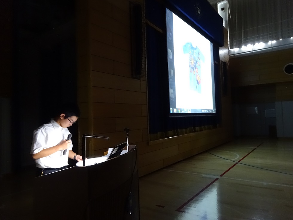 トピックス 2016/09/15 1年生対象の「クラスTシャツを作ろう教室」が実施されました 1年生対象『体育祭で着るクラスTシャツを作ろう!』が実施されました。 5,6時間目を利用して実施された今回の特別授業では、体育祭(10月7日実施)で着用するクラスTシャツのデザインを完成させるだけでなく菅公学生服株式会社スポーツ企画開発部井上様からアスリートユニホームの変移と今後について講演いただきました。 また、菅公学生服株式会社デザイナー田中様にもお越しいただき生徒達へ直接デザインについてアドバイスをしていただくなど有意義な時間を過ごすことができました。
