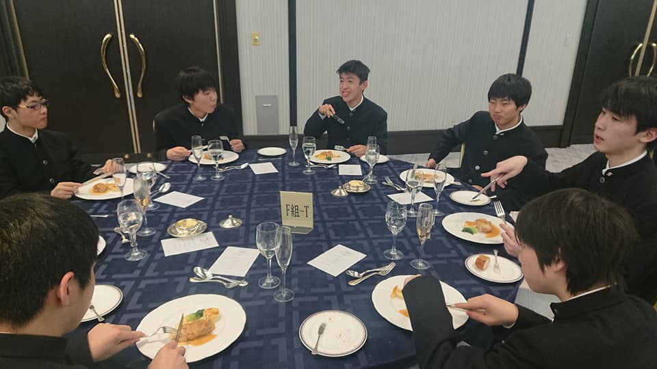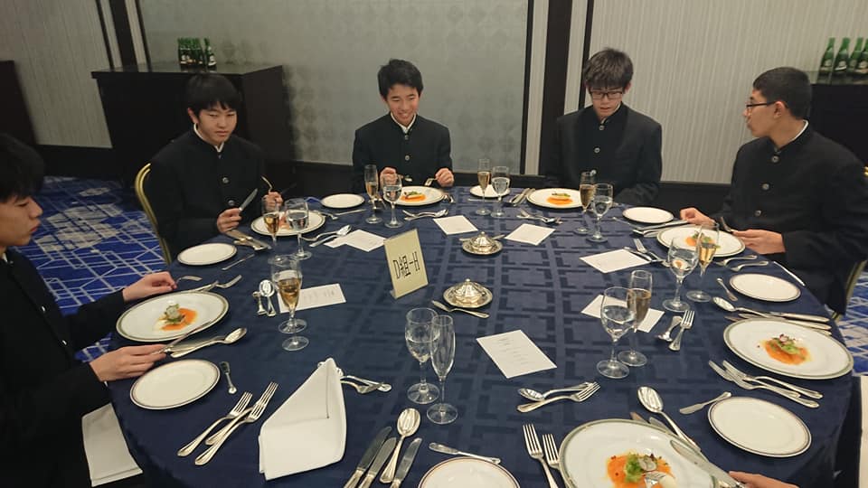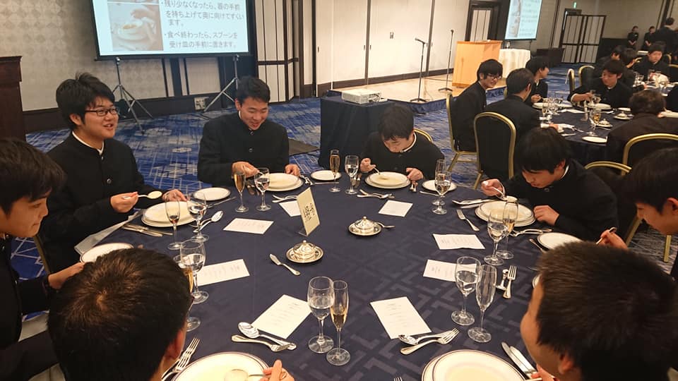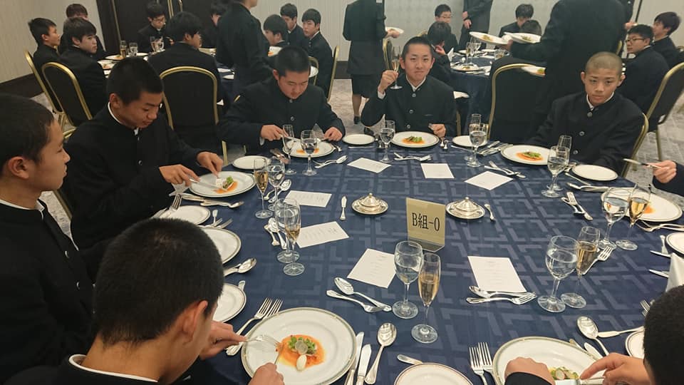 トピックス 2019/05/08 1年生対象のテーブルマナー教室を実施しました 4月27日、ホテル雅叙園東京で1年生対象のテーブルマナー教室が実施されました。 将来、社会に出てから役に立つ食事のマナーを学ぶものでクラスの友達と楽しく食事をしながらマナーについて真剣に学ぶ姿が見られました。