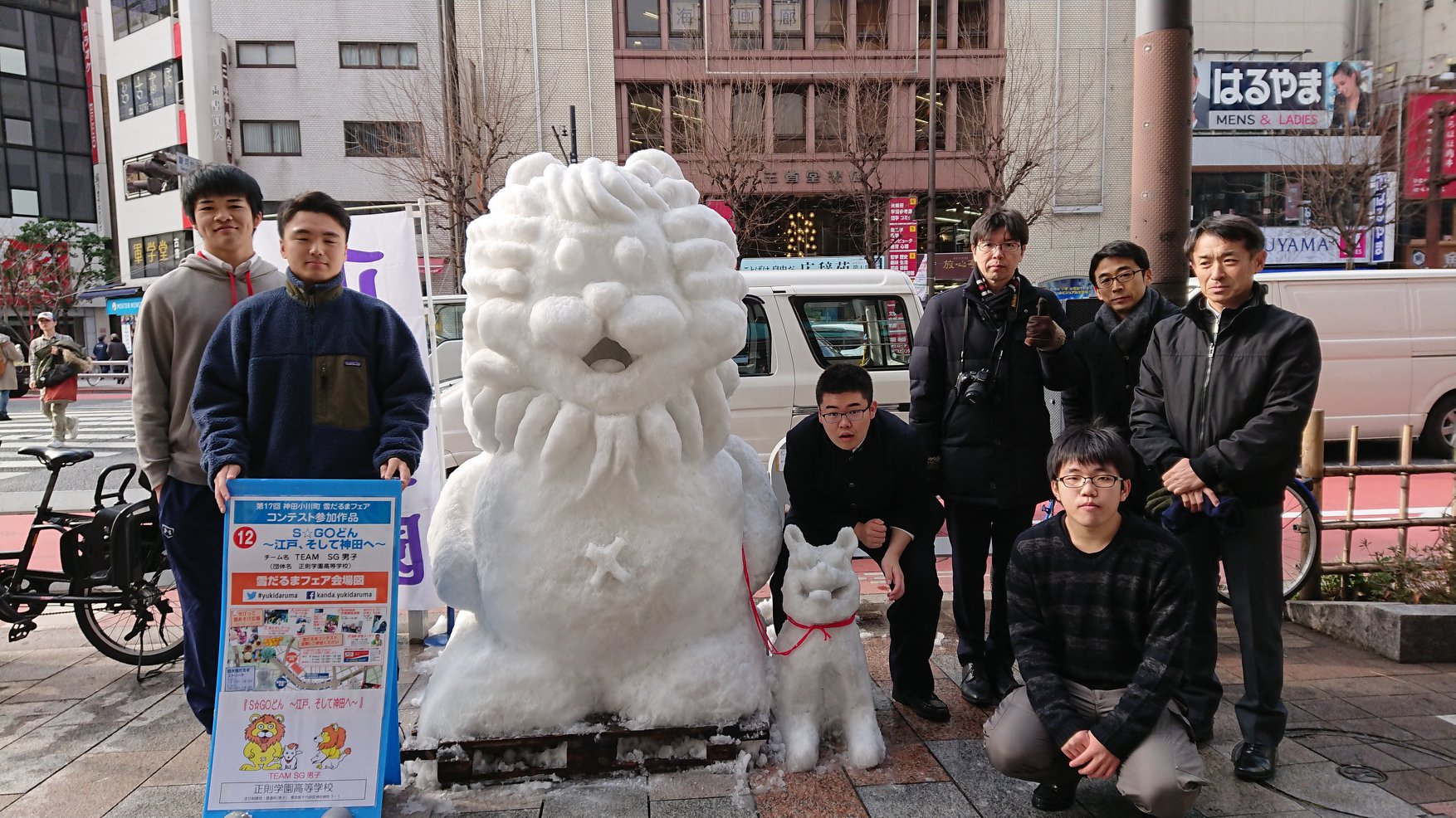 トピックス 2018/01/20 雪だるまフェアで最優秀賞を獲得いたしました 1月20日(土)、21日(日)に実施された第17回神田小川町雪だるまフェア 雪だるまコンテストに今年度も3年生有志と教職員の合同チーム、『TEAM SG男子』として参加いたしました。 完成した雪だるまは駿河台下交差点近くに設置され、たくさんの方に見て頂きました。 そして21日に投票結果があり、最優秀賞作品に選ばれました。