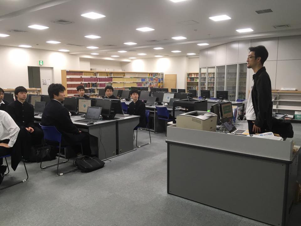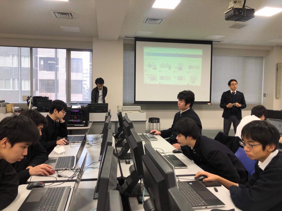 FabLab KandaNishikichoより井上先生を講師に迎え実施された特別授業では3Dプリンタでの出力の様子や3Dプリンタの可能性について、TinkerCADを用いたモデリングの仕方について講義していただきました。