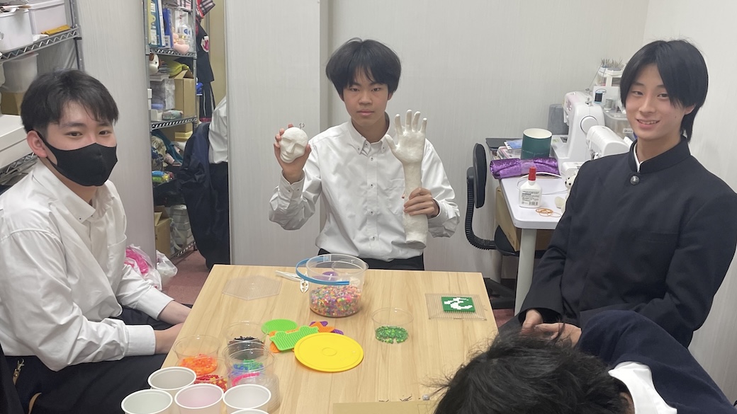 週1回の活動ですが、和やかな雰囲気の中、秋の文化部祭に向けて展示物の製作をしています。