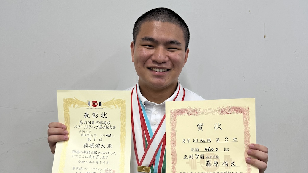2024年4月14日(済) 第58回東京都高校・サブジュニア・ジュニアパワーリフティング選手権大会 高校男子93kg級 優勝